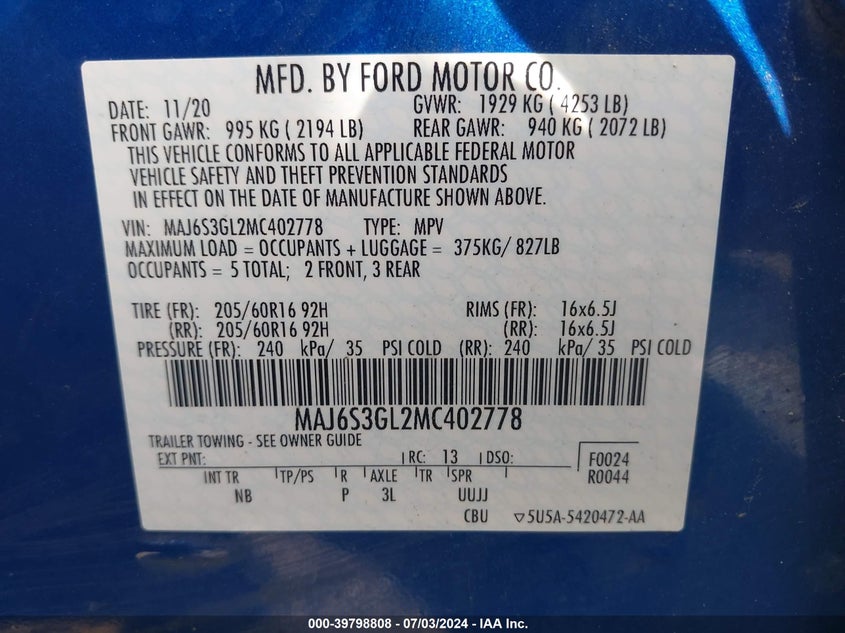 MAJ6S3FL4NC476075