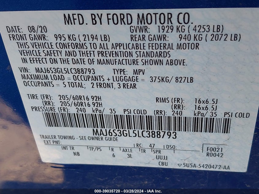 MAJ6S3KL9LC359420