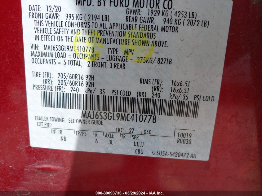 MAJ6S3FL3MC439226