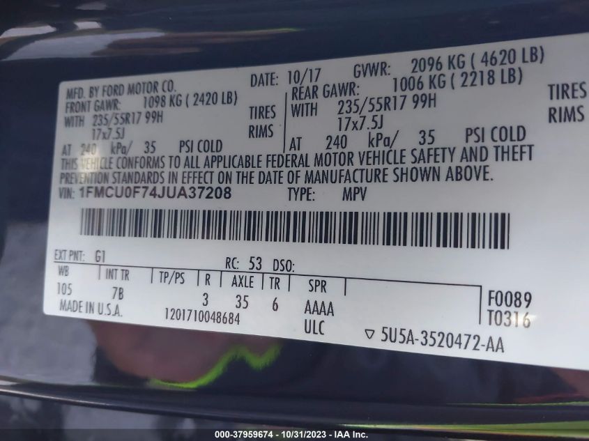 1FMCU0F74JUA37208
