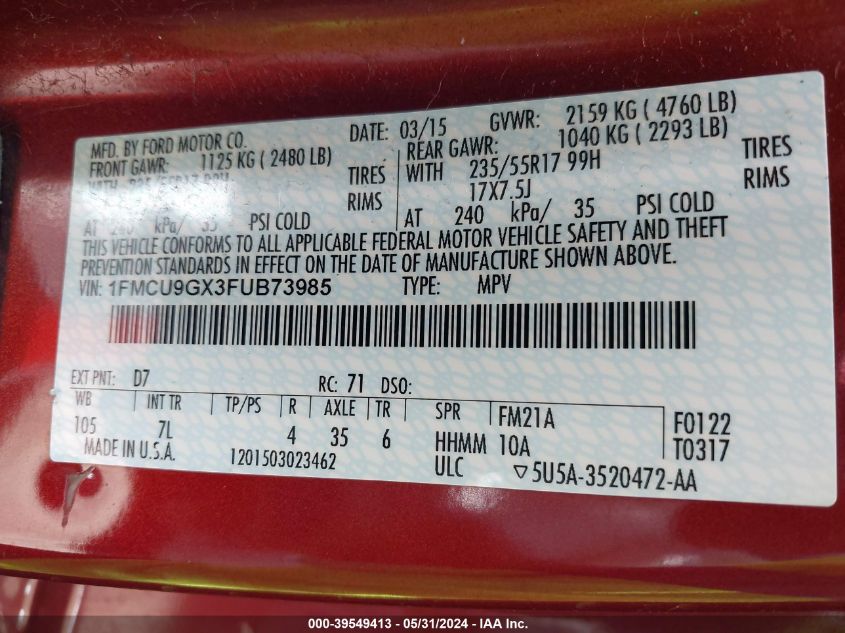 1FMCU9GX3FUB73985