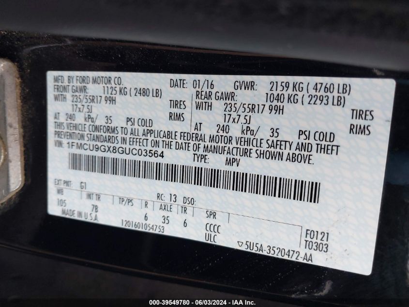 1FMCU9GX8GUC03564