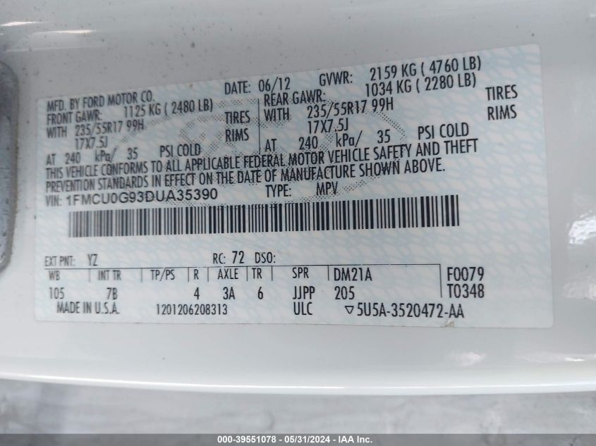 1FMCU0G93DUA35390