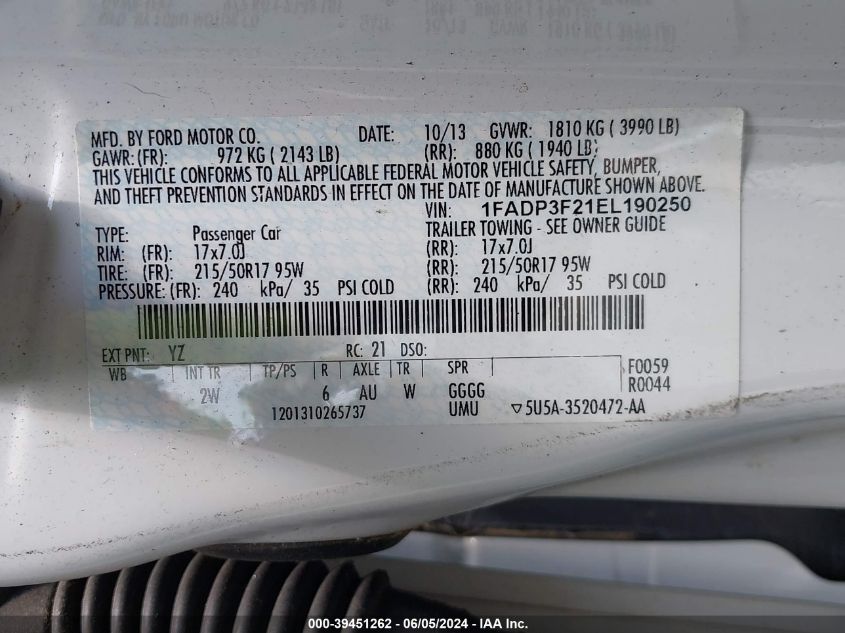 1FADP3F21EL190250