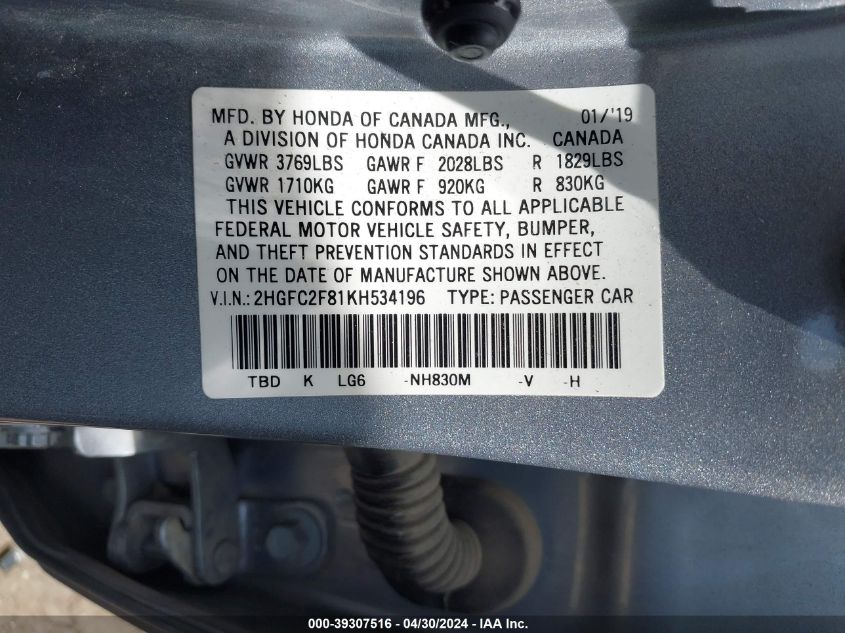 2HGFC2F81KH534196