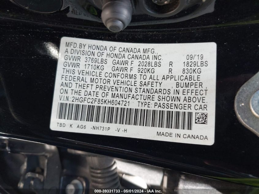 2HGFC2F85KH534668