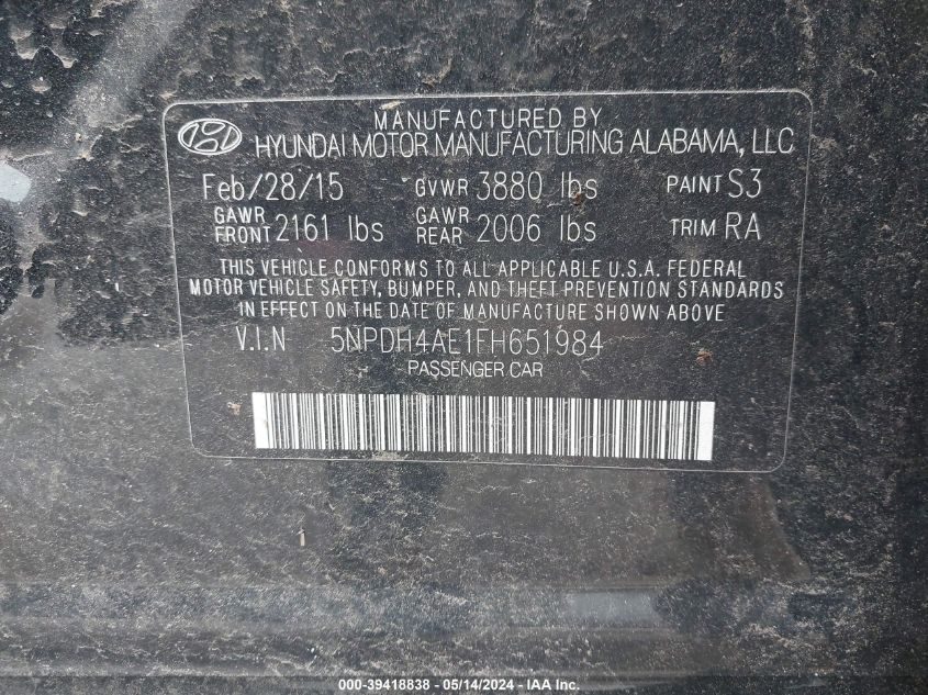 2015 Hyundai Elantra Se/Sport/Limited