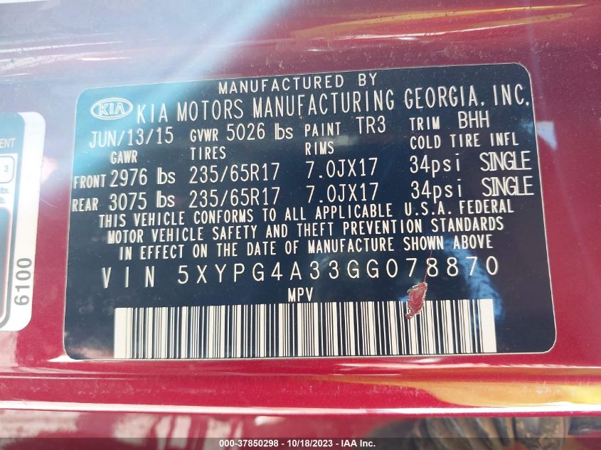 2016 Kia Sorento 3.3L Lx