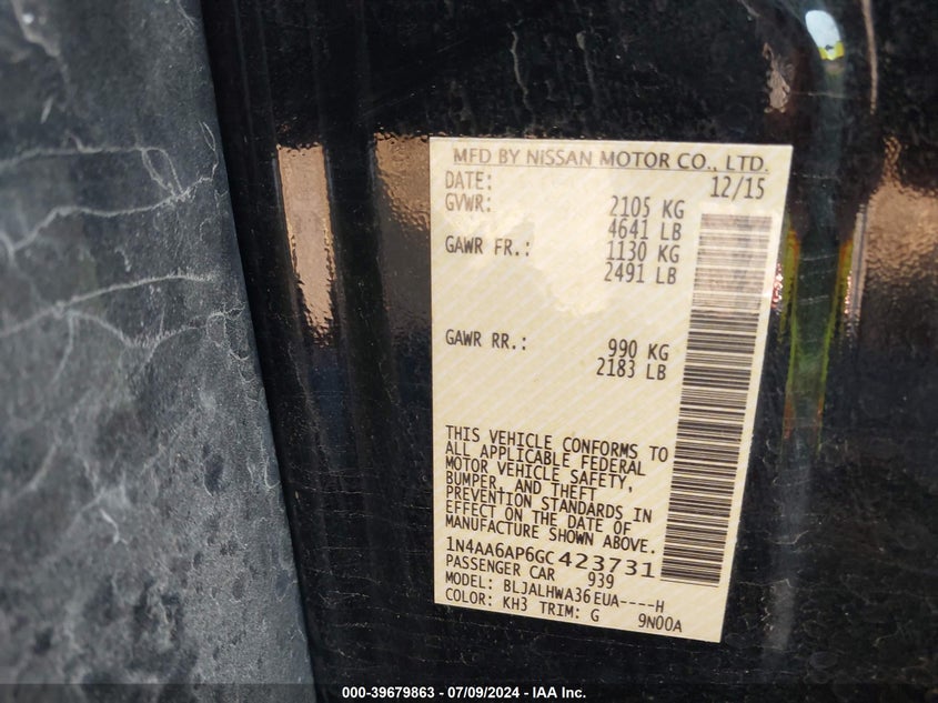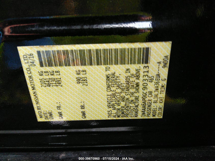 2016 Nissan Maxima 3.5S/Sv/Sl/Sr/Plat