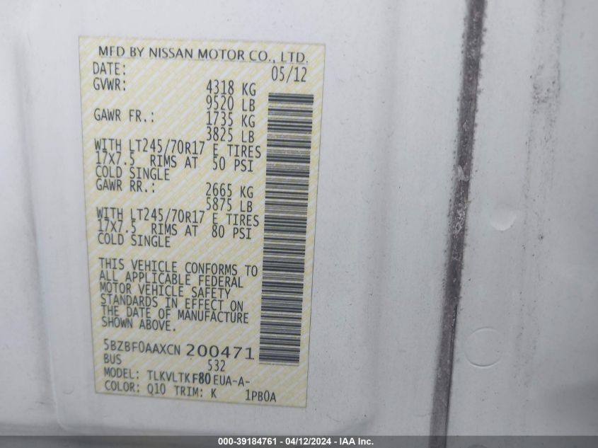 2012 Nissan Nv 3500 Nv3500 Hd Sv V6