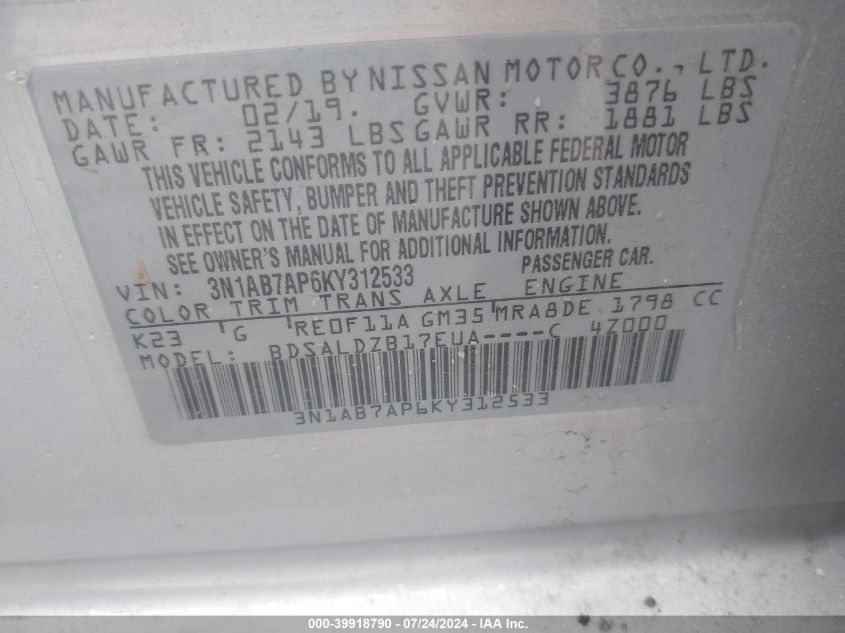 2019 Nissan Sentra Sv