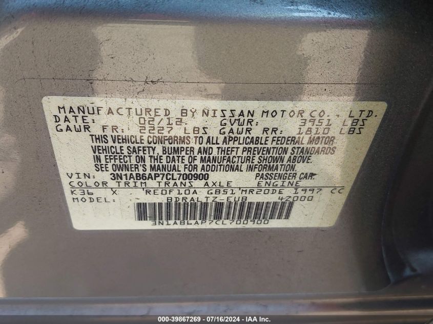 2012 Nissan Sentra 2.0/2.0S/Sr/2.0Sl