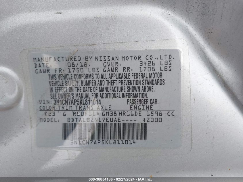 2019 Nissan Versa 1.6 Sv