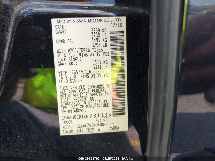 2019 Nissan Frontier Sv
