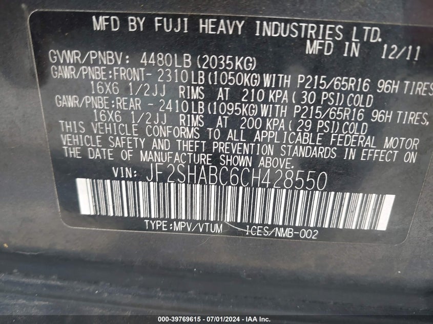 2012 Subaru Forester 2.5X