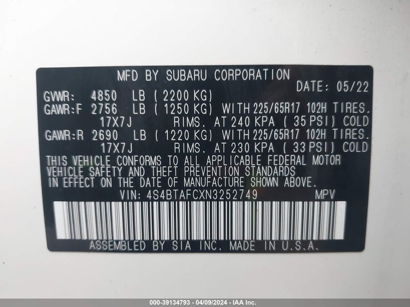 4S4BTAFCXN3252749