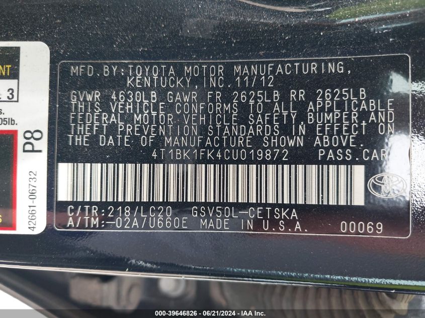 2012 Toyota Camry Base