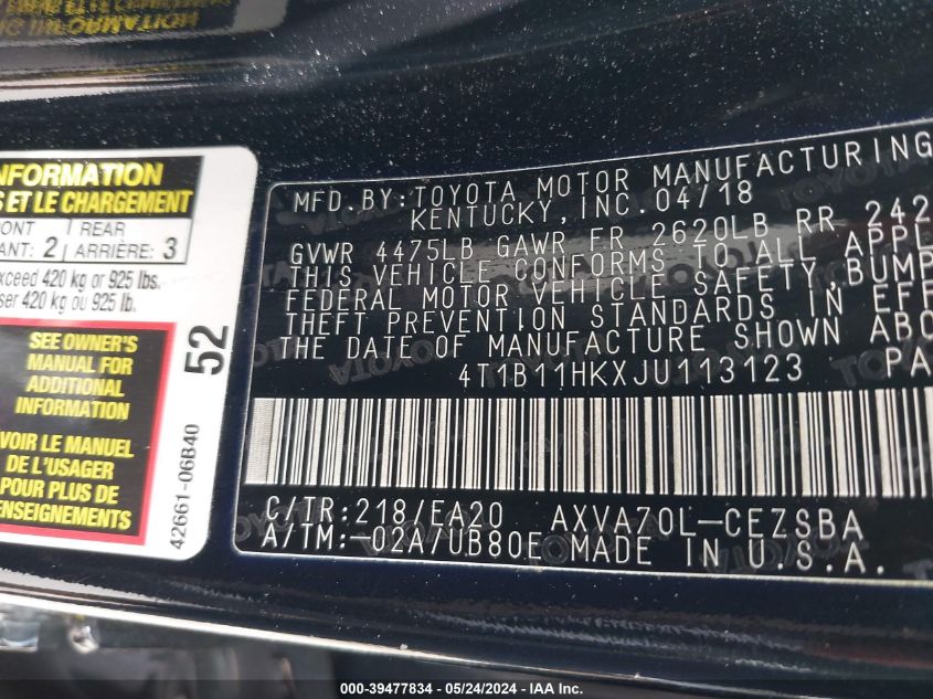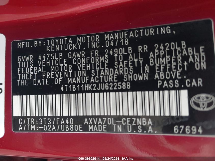 2018 Toyota Camry Le