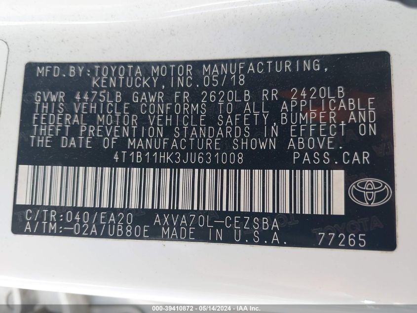 2018 Toyota Camry L