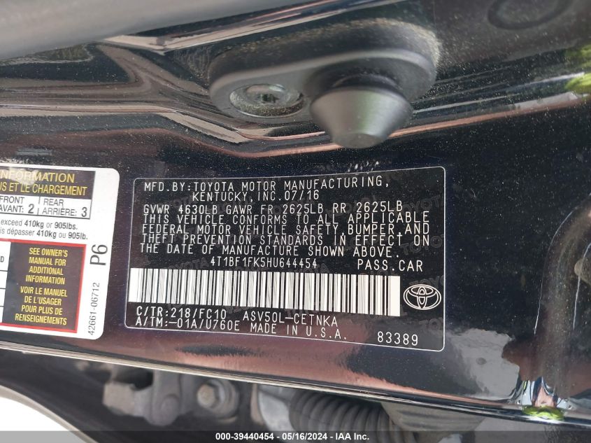 2017 Toyota Camry Le