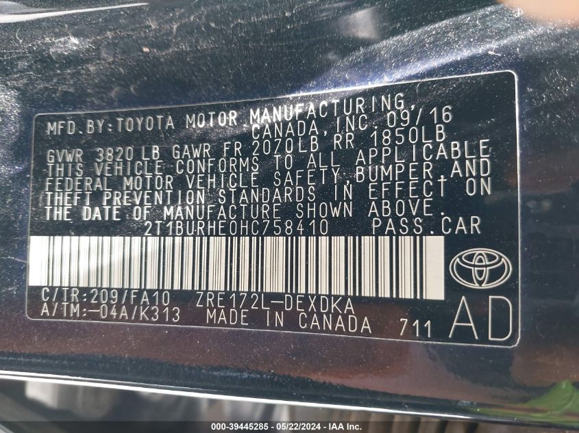 2017 Toyota Corolla Le
