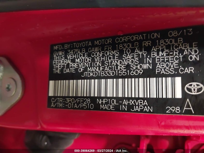 JTDKDTB33D1051837