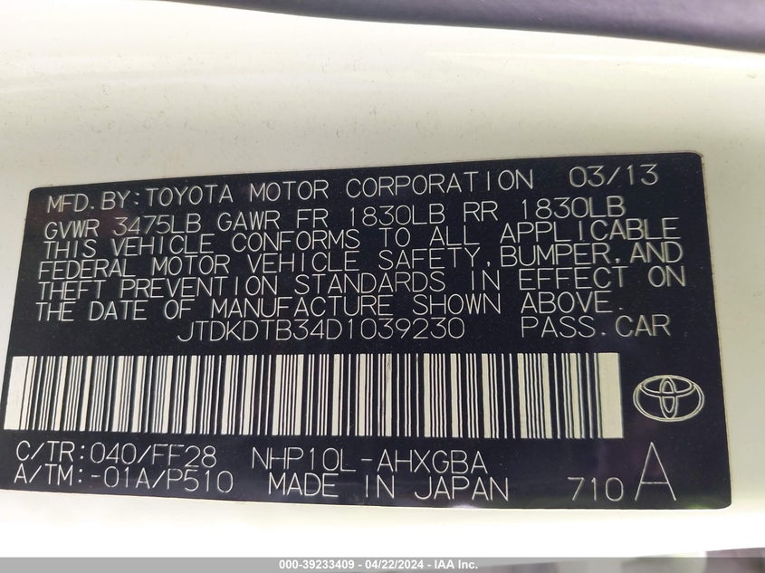 JTDKDTB34D1039230