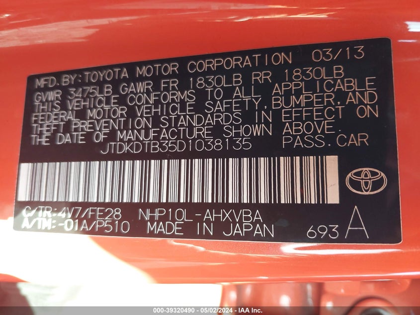JTDKDTB35D1038135