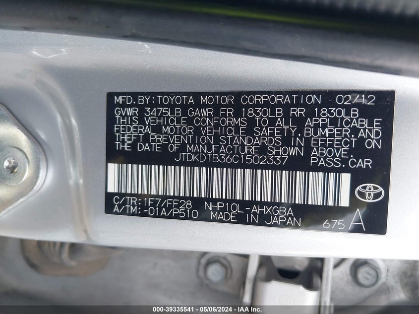 JTDKDTB36C1502337
