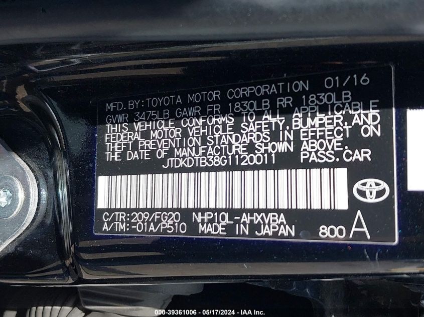 JTDKDTB38G1120011