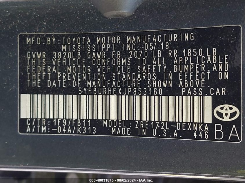 2018 Toyota Corolla L/Le/Xle/Se/Xse