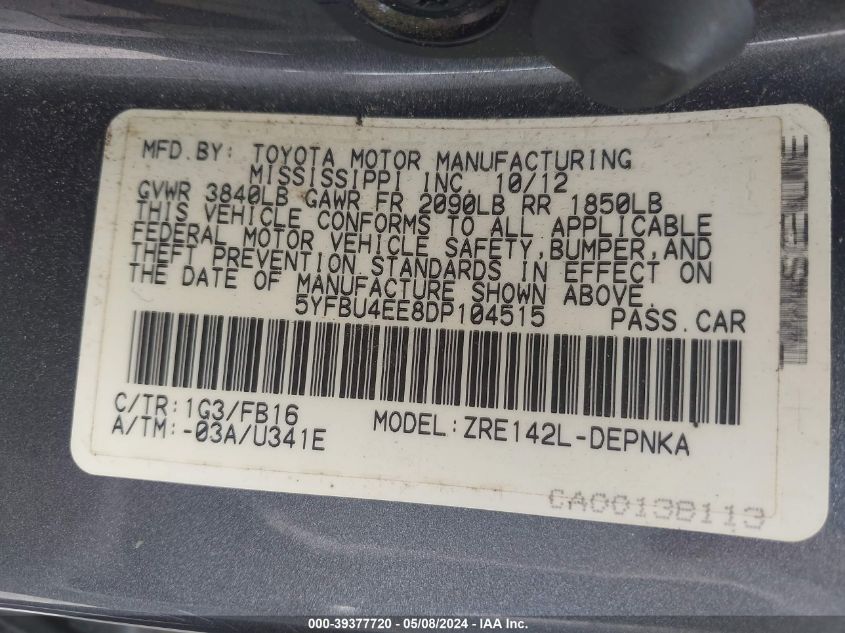 2013 Toyota Corolla Le
