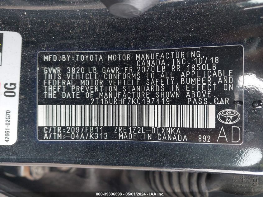 2019 Toyota Corolla Le