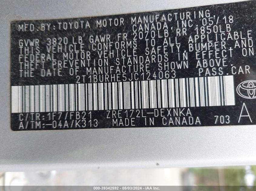 2018 Toyota Corolla Le