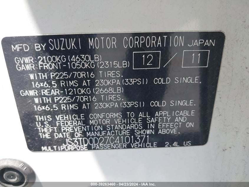 2012 Suzuki Grand Vitara Ultimate Adventure