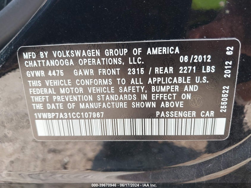 2012 Volkswagen Passat Se